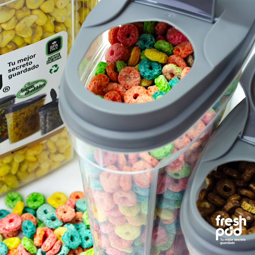 Este set de 3 botes Freshpod es ideal para mantener tus alimentos frescos por más tiempo y trasportarlos de manera cómoda. Diseño ergonómico con tapa de vertido y mango de fácil agarre.